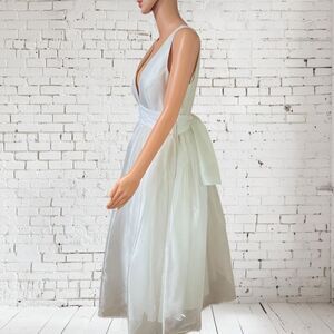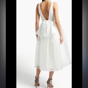 Adorable Tea length organza dress with big bow accent on back. So gorgeous