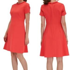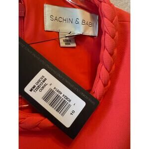 Sachin + Babi Crepe Braided Crew Neck Sheath Dress Coral Orange Women's Size 10