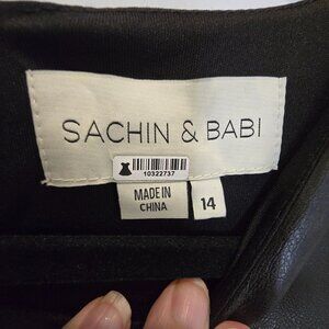 Sachin & Babi Diana Black Faux Leather BodyCon Sleeveless Midi Dress Size 14