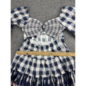 Sachin & Babi Dress Womens Small Blue White Gingham Smocked Puff Sleeve Mini