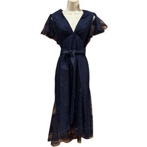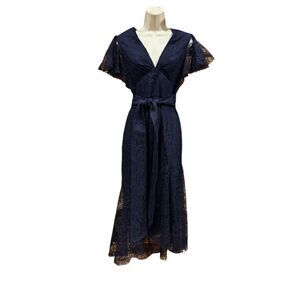 Sachin & Babi "Estella Dress W/ Floral Lace Overlay in Navy Blue NWT Size 2