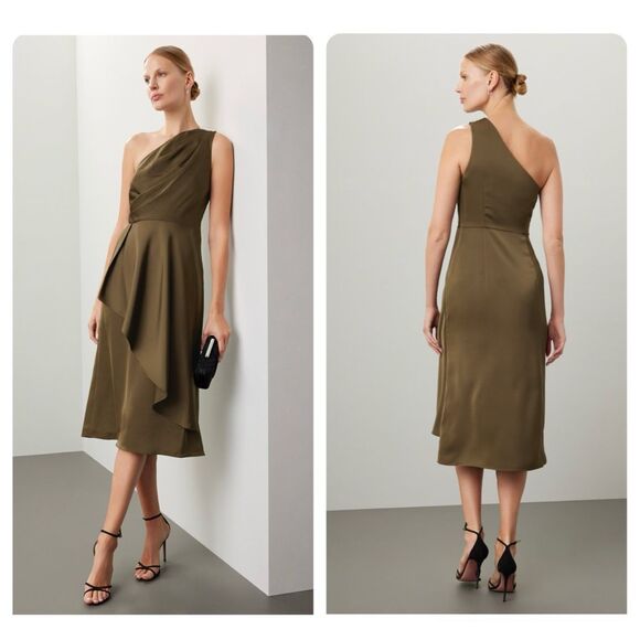 NWT Sachin & Babi Evangeline Draped One-shoulder Midi Dress Olive Size 4 $495