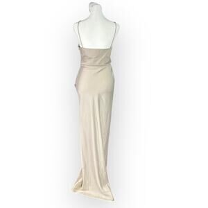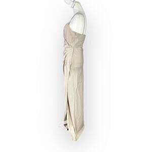 Sachin & Babi Freya Dress Women's 4 Champagne Satin V-Neck Sleeveless Maxi Gown