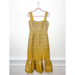 Elegant gold midi dress. Features a subtle shimmer. Sleeveless with a side slit. Perfect for evening wear or day wear!