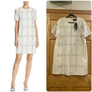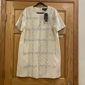 Note the last picture has a black spot on the garment haven’t tried to remove but priced accordingly. Round neckline. Short sleeves. Shift silhouette. Knee-length. Hidden back zip. Polyester Dry clean. Imported. L37” Sleeve 10” Arm pit to arm pit 20”