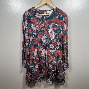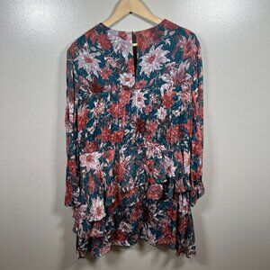 Sachin & Babi Meg Tiered Floral Print Chiffon Mini Dress Size Large Floral Event