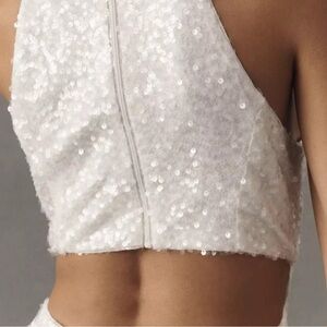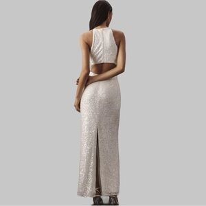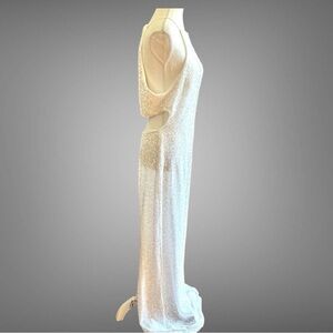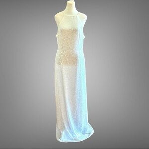 Shine in this stunning white sequin gown, perfect for any special occasion. The elegant design offers a timeless look.