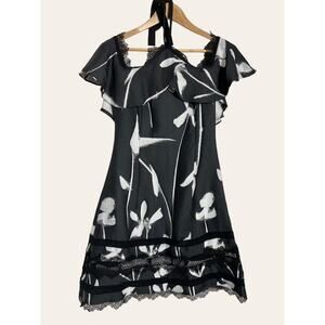 Sachin Babi NOIR Black White Lace Off The Shoulder Cocktail Dress Size 6