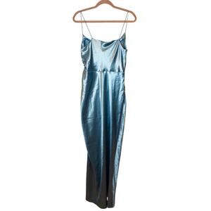 Sachin + Babi NWT Jennings Blue Ruched Hammered Side Slit Maxi Dress Size 14