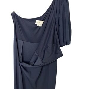 Sachin & Babi Nadia One Shoulder Gown Navy Blue Size 2 Leg Slit A Line