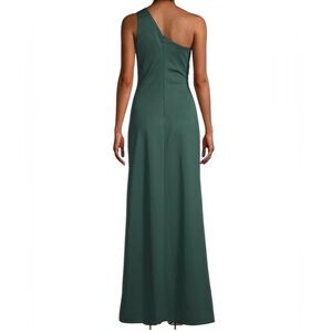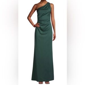 Sachin and Babi Cece gown, emerald green formal dress, one shoulder evening gown, stretch crepe dress, size 10 green gown, wedding guest dress, formal emerald dress, designer gowns women, gala dress, asymmetrical neckline gown