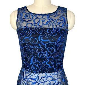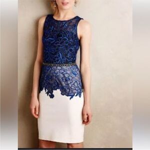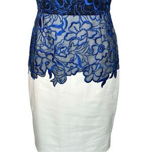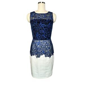 Sachin + Babi Noir Blue and White Lace Crepe Sheath Cocktail Dress| Size 6