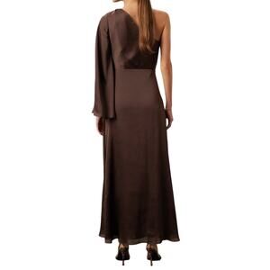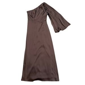 Brown (100% Polyester). Gown. Long sleeve. One shoulder. Side zipper closure. 60" from shoulder to hemline. Imported.