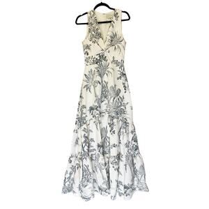 Sachin & Babi Rori Gown Grey Toile Print Ivory Maxi Dress Sleeveless Size 2 NWT