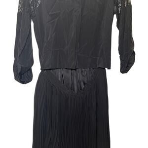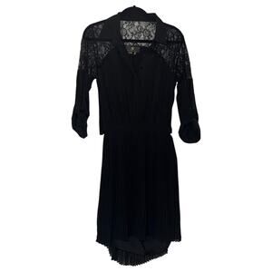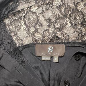Sachin + Babi Silk Blend Pleated Collared Long Sleeve Lace Dress Black Size 8