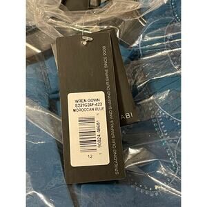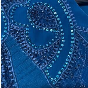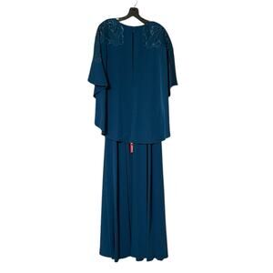 Sachin & Babi Size 12 NEW Moroccan Blue Crepe Embroidered Wren Cape Maxi Gown