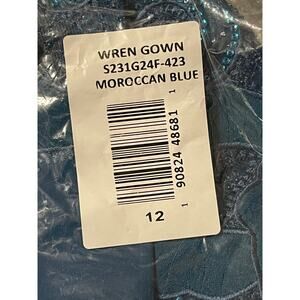 Has the red return prevention tag ensuring this gown has not been worn. Directions on how to easily remove this at home are included. Once removed it cannot be reattached.