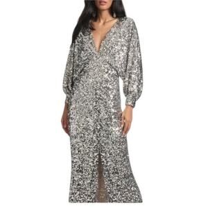 Sachin + Babi Size 8 NEW Women's Sequin Gabby Glitter Long Sleeve V Neck Gown NWT