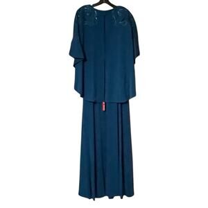 Sachin & Babi Size 8 NWT Moroccan Blue Crepe Embroidered Wren Cape Maxi Gown