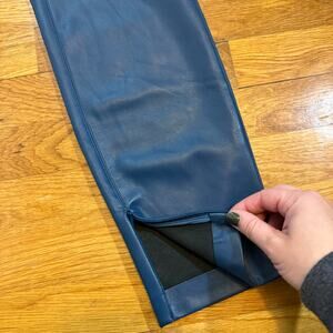 Sachin & Babi Women’s 4 Blue Megan Faux Leather Skinny Leg Pants. Zipper on the ankle. Side zipper. Good stretch to the material. Never worn.