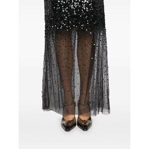 Stunning Sachin & Babi long formal gown in classic black with fully embellished sequin design. Features sheer mesh neckline and hem, creating an elegant silhouette and modern evening look. Perfect for black tie, wedding guest, gala events, holiday parties, prom, and special occasions.