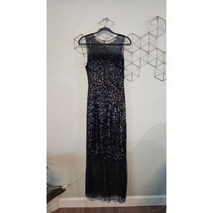 Sachin & Babi Womens Black Sequin Design Sleeveless Long Gown Dress Size 4