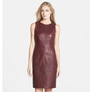 Sachin + Babi Women's Burgundy Lambskin Leather Sleeveless Sheath Dress …