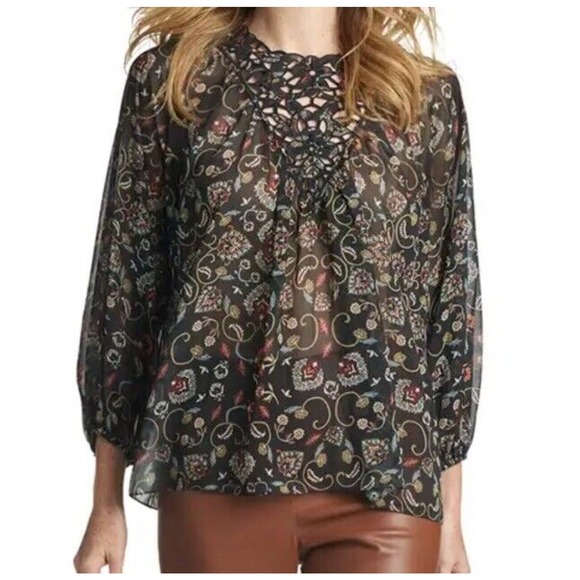 Sachin & Babi Women's Dylan Printed Cutwork Top Blouse Size XS Floral Boho