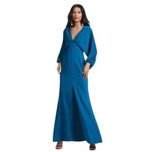 Sachin & Babi Womens Size 6 Teal Gabby V Neck Long Sleeve Beaded Maxi Gown Brand New With Tags NWT