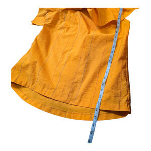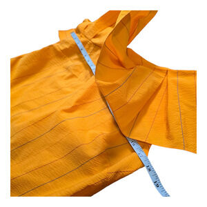 Gorgeous bright yellow striped blouse from Sachin and Bobi ready to wear line. Size 10. One shoulder with ruffles, super flattering.