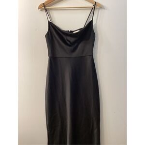 Sachin & Babi serena black satin cowl neck midi slip dress
