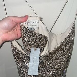 Sachin & Babi x Anthropologie Colorblocked Sequined Midi Dress 8 Petite