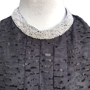 Sachin Babi x Anthropologie black lace layered swing blouse. High low hemline. Mock neck with white bead and pearl accents. Buttons at back of neck.