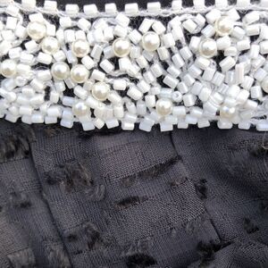Sachin Babi x Anthropologie Black Lace Pearl Bead Mock Neck Hi-Low Swing Top 8
