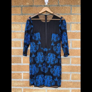 Sachin & Babi Sentieri mesh overlay embroidered 3/4 sleeves Dress size 6 in good condition retail $595