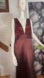 This stunning burgundy evening gown features a deep V-neckline and a fitted silhouette, perfect for formal occasions. The rich color adds a touch of sophistication to your wardrobe.