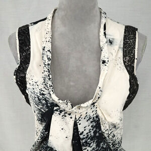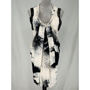 Sachin and Babi Ankasa Dress Womens 4 Ivory Black Silk Lined Sequins Shift Pleat