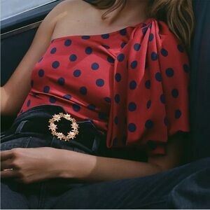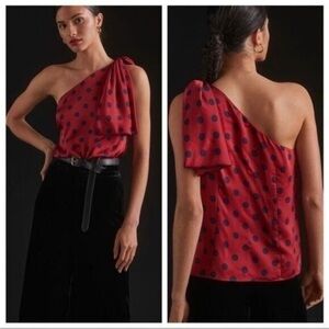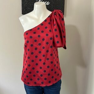 Sachin and Babi Polka Dot One Shoulder Blouse Red Navy Anthropologie Sz XS