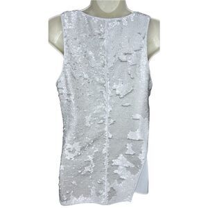 Sleeveless winter white brushable sequin top, brushing with fingers creates your own design. Dress up a pair of skinny jeans with this top and pumps!