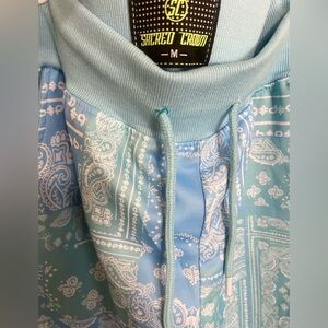 Sacred Crown Blue Bandana Paisley Patchwork Hoodie & Matching Sweat Shorts Med