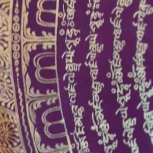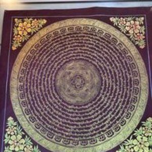 Approx. 22*22 inches Authentic New Mandala of Mantra of Fortune and Wealth.( Om Zambala Zalen Draye Soha) with Vajra of infinity at the Center. Gold Canvas Painting.