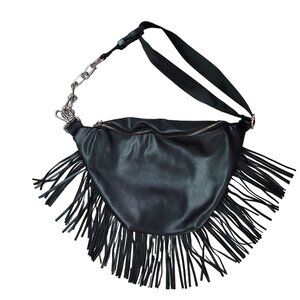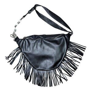 Sacred Hawk Fringe Waist Bag Black Faux Leather cross body boho Rocker bag