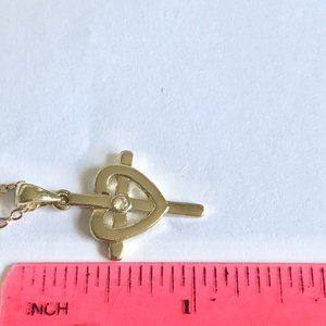 Sacred Heart Cross Necklace 18" Gold Plated Crystal Catholic Christian Gift