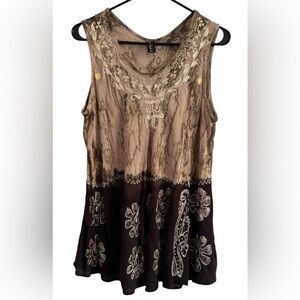 Sacred Thread Brown Tan Floral Embroidery Lightweight Blouse Size Medium OS