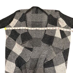 Sacred Threads Black OS Buffalo Plaid Open Draped Knit Cardigan Scandi Nordic