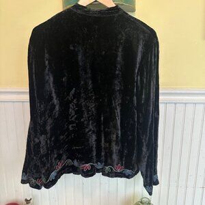 Sacred Threads Black Velvet Embroidered Floral Button-Up Jacket & Skirt M/L
