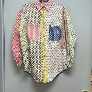 Sacred Threads Colorful Patchwork Button Down Shirt