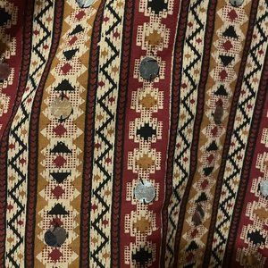 Sacred Threads label earth toned tribal print blouse with silver sparkles. Marked XL