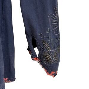 Sacred Threads Embroidery Floral Accents Bohemian Navy Shirt Top Size Small