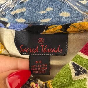Sacred Threads M/L Boho Patchwork Jacket 100% Cotton Multicolor Button Front